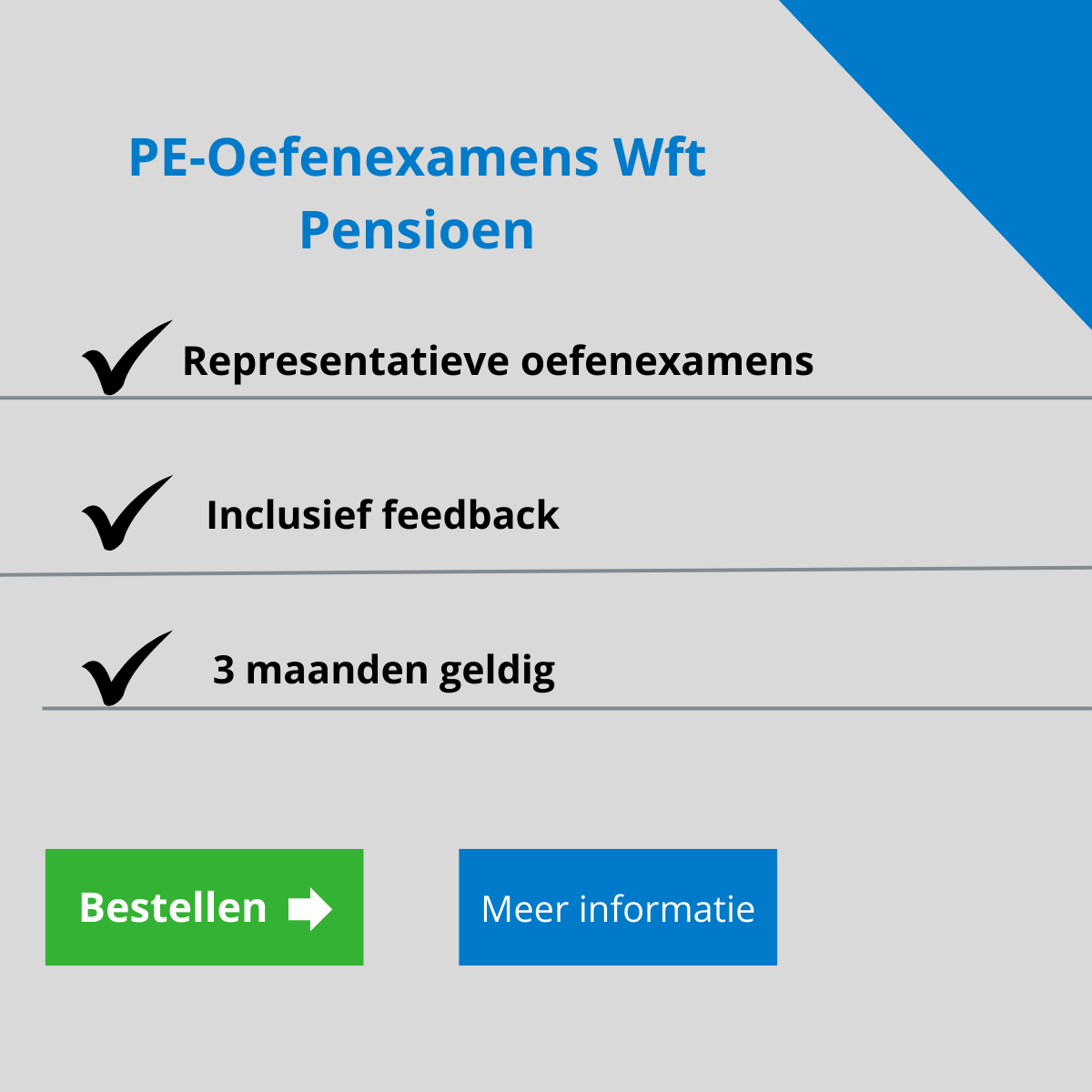 Wanneer je de module PE Inkomen besteld ( PE Inkomen en PE Basis), dan bestel je een volledige PE opleiding. Dit betekent dat je alles ontvangt wat je nodig hebt om goed voorbereid het PE Inkomen in te gaan. PE examen doe je voor de gehele beroepskwalificatie.